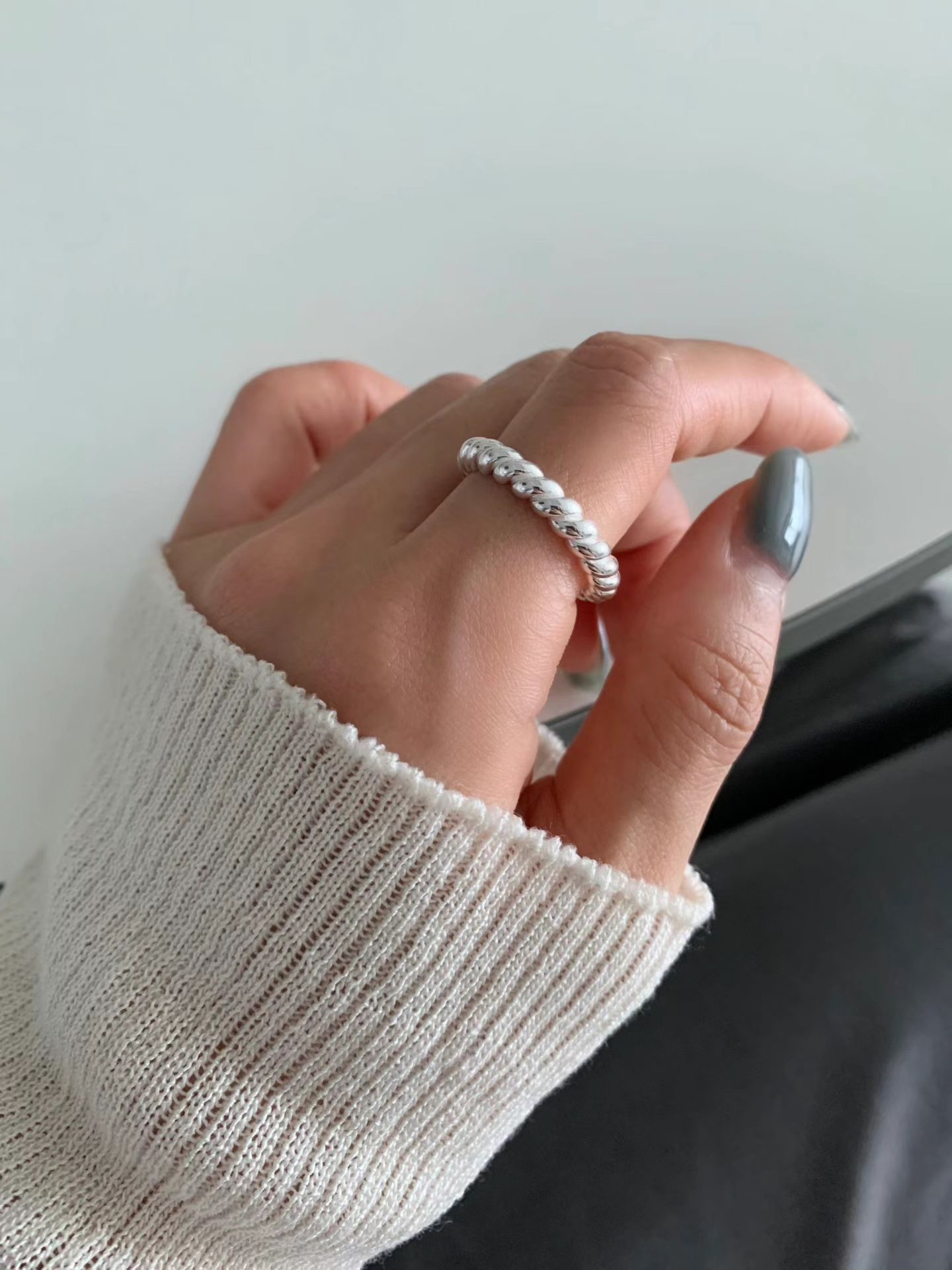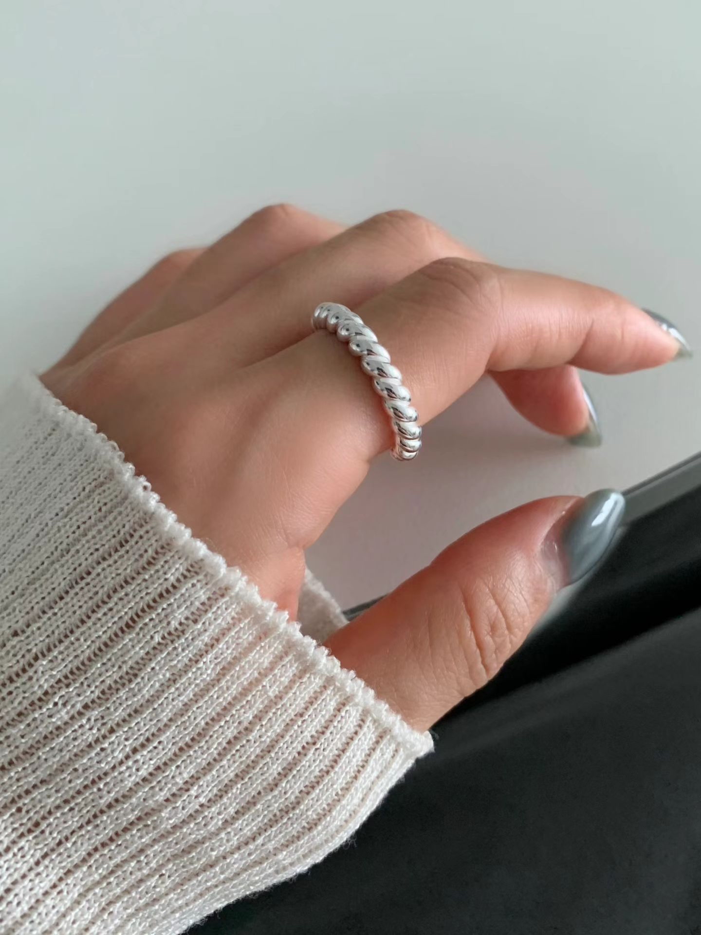 秋季新品|韓國飾物silver925 扭紋開口戒指