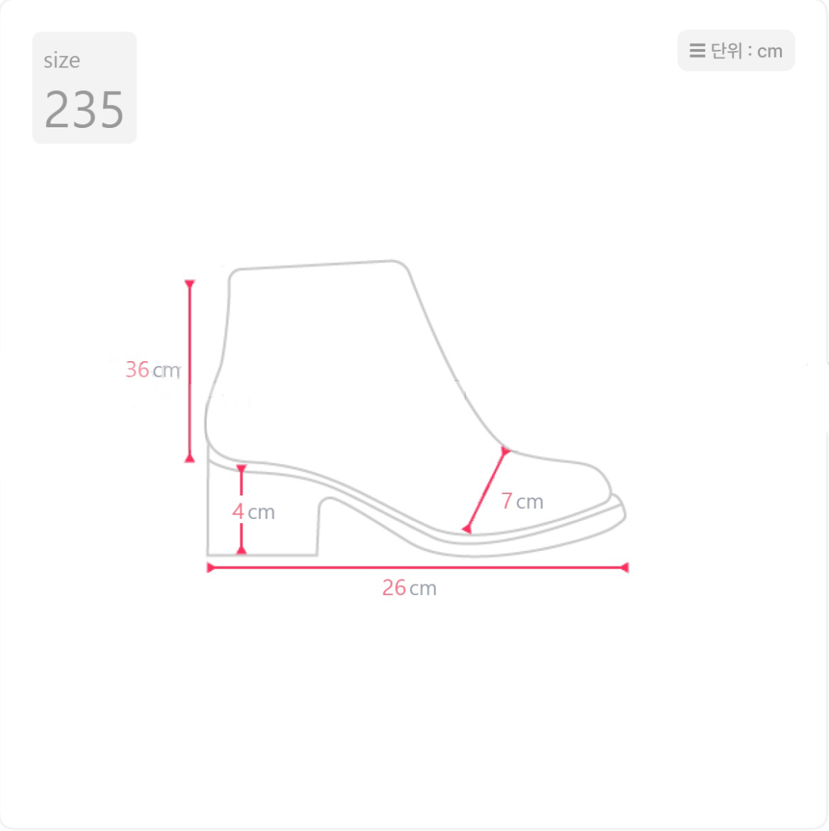 跟高4cm 防滑底 Size: 韓國碼230-250 (偏小半碼) 店主38碼腳,選擇245碼適合 這款boot是店主的自留款🤎 自己試穿了一個月滿意才推出給大家!版型很好看 *店主158cm高 ;小腿圍約35-36cm 試範245碼